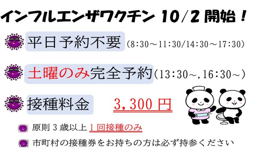 ■インフルエンザの流行が始まりました ![]() 2025/10/20 鳥取県からもインフルエンザの流行が始まったとの発表がありました。 ワクチン接種後2週間程度で抗体ができます。 |