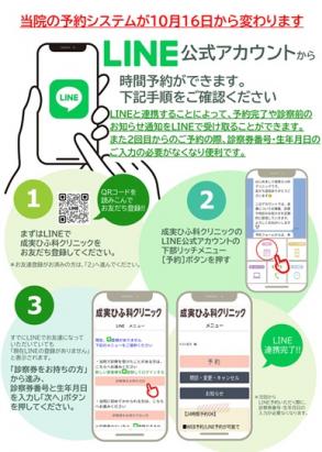 2025/10/16 ![]() 本日より、LINEから入っていただく予約システムに変更 順番ではなく、時間予約になります。 予約優先ですが、直接来院の方も必ず診察いたしますので ご不明な点はLINE、お電話、HPでお問い合わせください。 |
